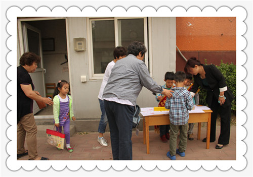 家长早晨把宝宝送到幼儿园
